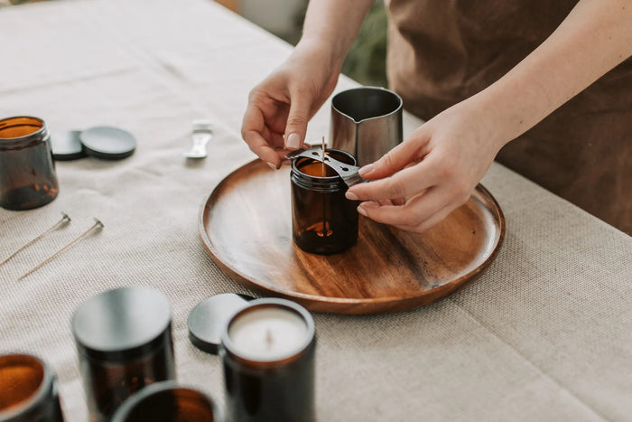 Chaque bougie est fabriquée artisanalement dans notre atelier en France. Ce savoir-faire minutieux permet de garantir des finitions soignées et des parfums parfaitement dosés.